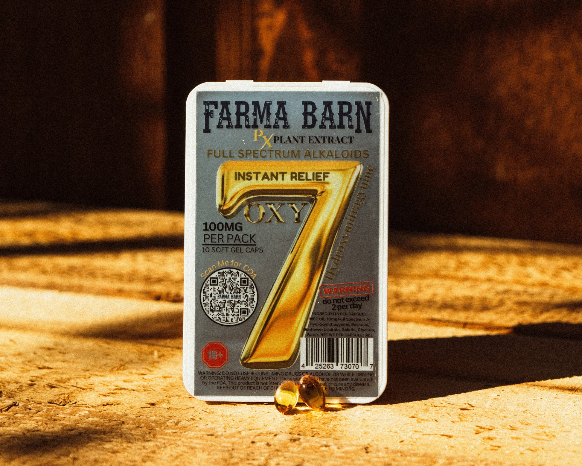 7-Hydroxymitragynine has been scientifically shown to interact with OPIOID RECEPTORS in the brain and are classified as indole alkaloids. Extracted from the foliage of the Mitragyna speciosa, 7-Hydroxymitragynine is an exceptional alkaloid boasting intriguing characteristics. Farma Barn’s 7-OXY offers novel plant based gel capsules for maximum absorbsion and instant relief with the purest 7-Hydroxymitragynine.