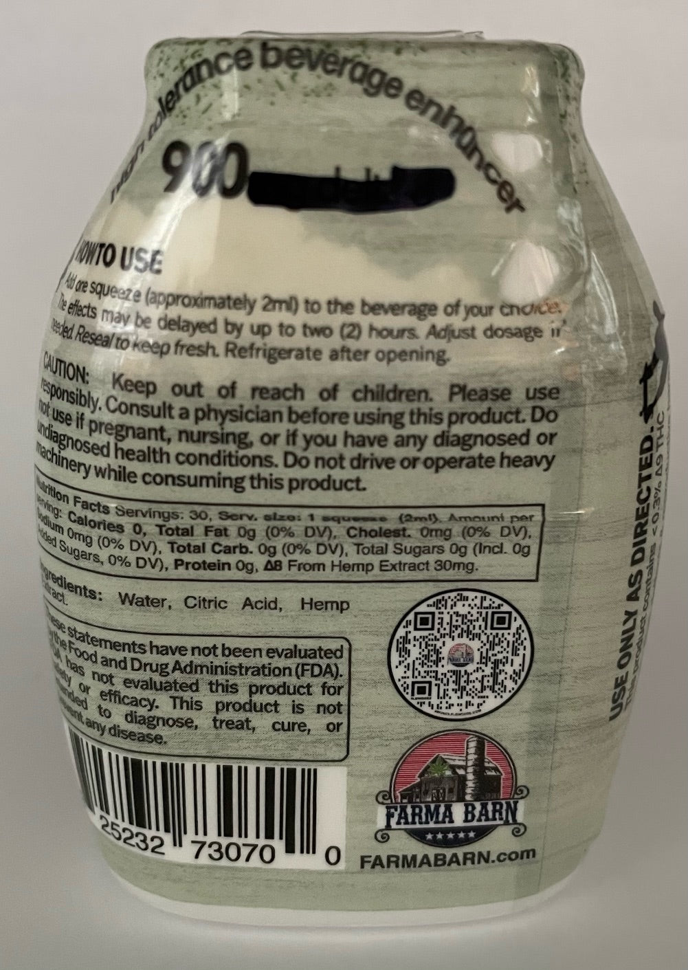 All of Farma Barn® brands are a hemp product. Farma Barn® products contains a total delta-9 tetrahydrocannabinol concentration that does not exceed 0.30 percent on a dry-weight basis. Farma Barn® does not claim or assert that its product(s) have any medical benefits.Delta-9 THC is a natural compound found in cannabis, a plant species that includes hemp and marijuana. The difference between hemp and marijuana is their percentage of Delta-9 THC.