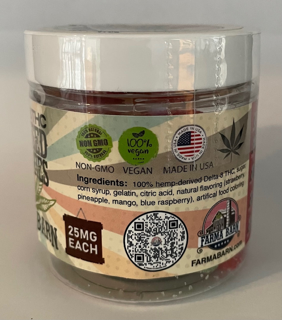 All of Farma Barn® brands are a hemp product. Farma Barn® products contains a total delta-9 tetrahydrocannabinol concentration that does not exceed 0.30 percent on a dry-weight basis. Farma Barn® does not claim or assert that its product(s) have any medical benefits.Delta-9 THC is a natural compound found in cannabis, a plant species that includes hemp and marijuana. The difference between hemp and marijuana is their percentage of Delta-9 THC.
